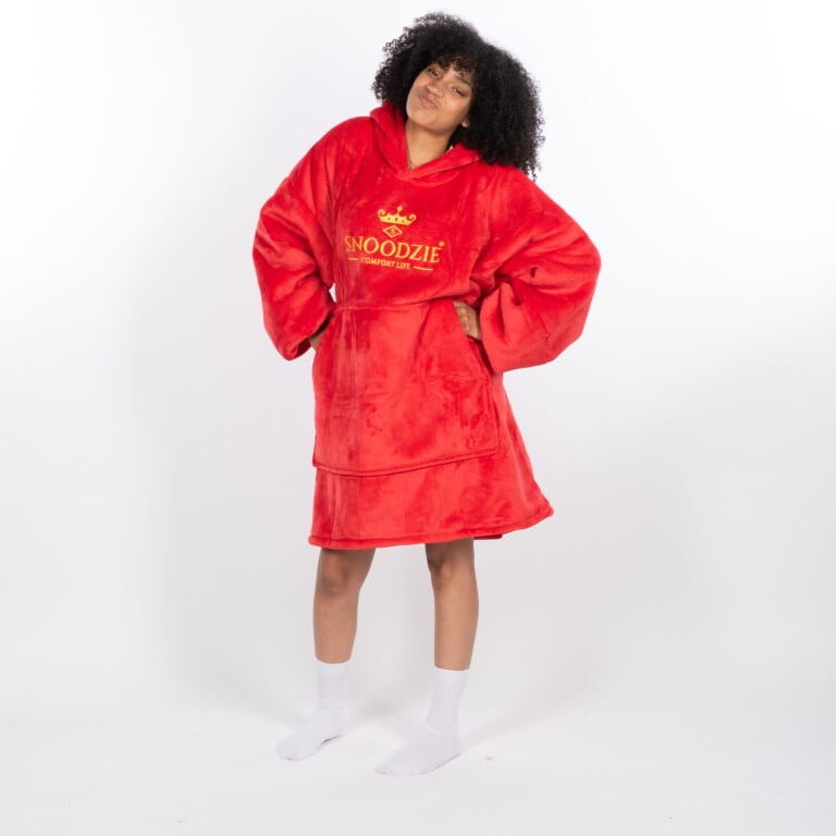 - De Snoodzie is een superzachte ONE SIZE FITS MOST deken met capuchon. Het is gebaseerd op een 6XL hoodie.