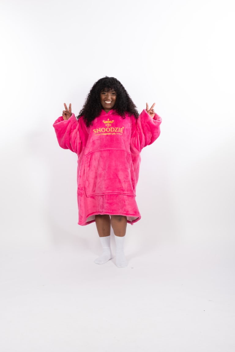 - De Snoodzie is een superzachte ONE SIZE FITS MOST deken met capuchon. Het is gebaseerd op een 6XL hoodie.