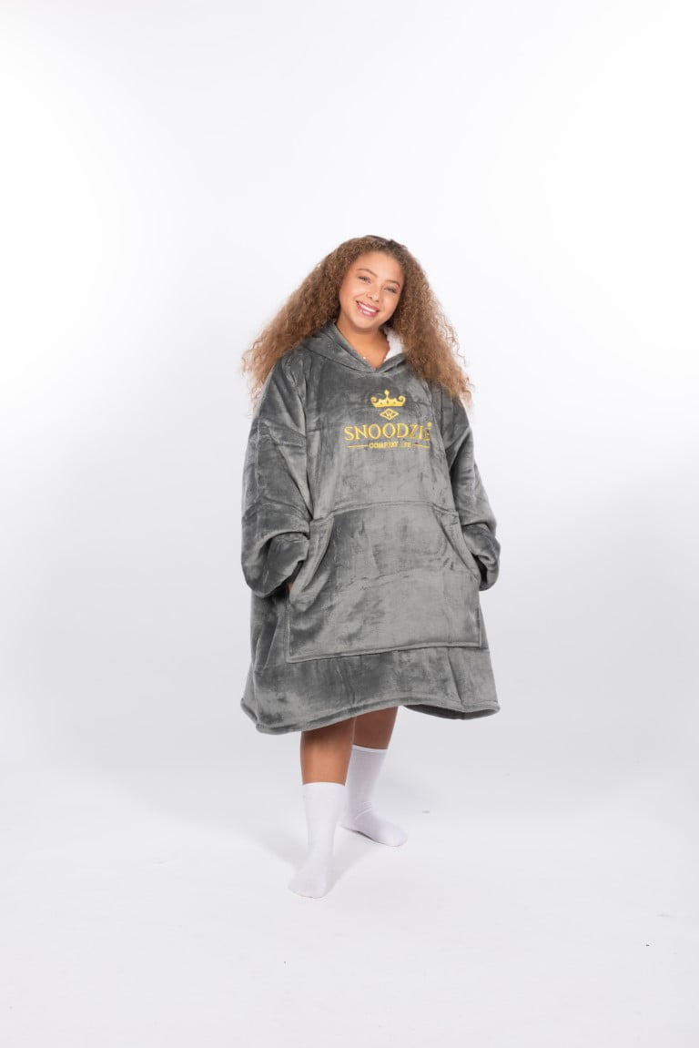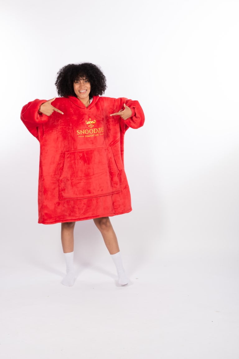 - De Snoodzie is een superzachte ONE SIZE FITS MOST deken met capuchon. Het is gebaseerd op een 6XL hoodie.